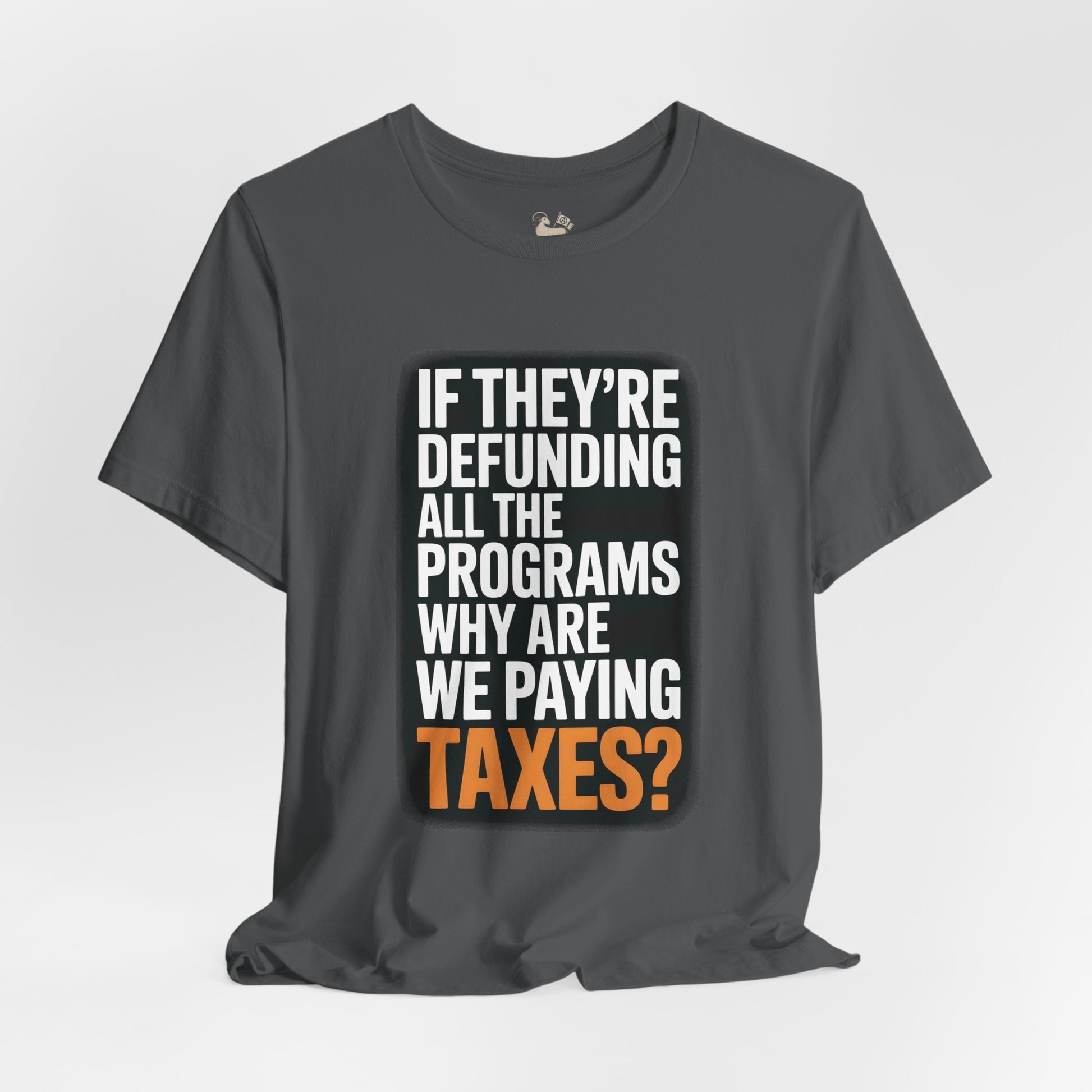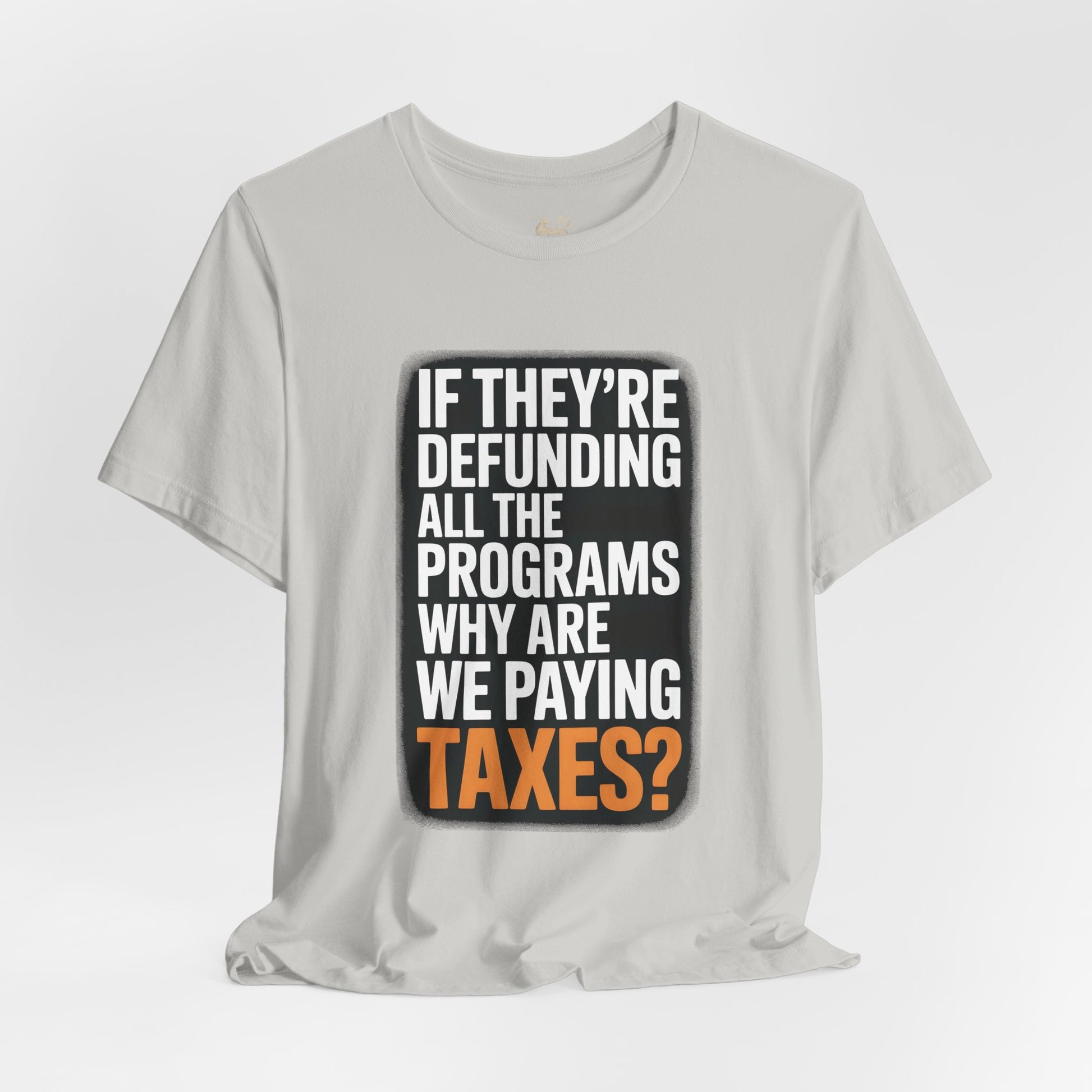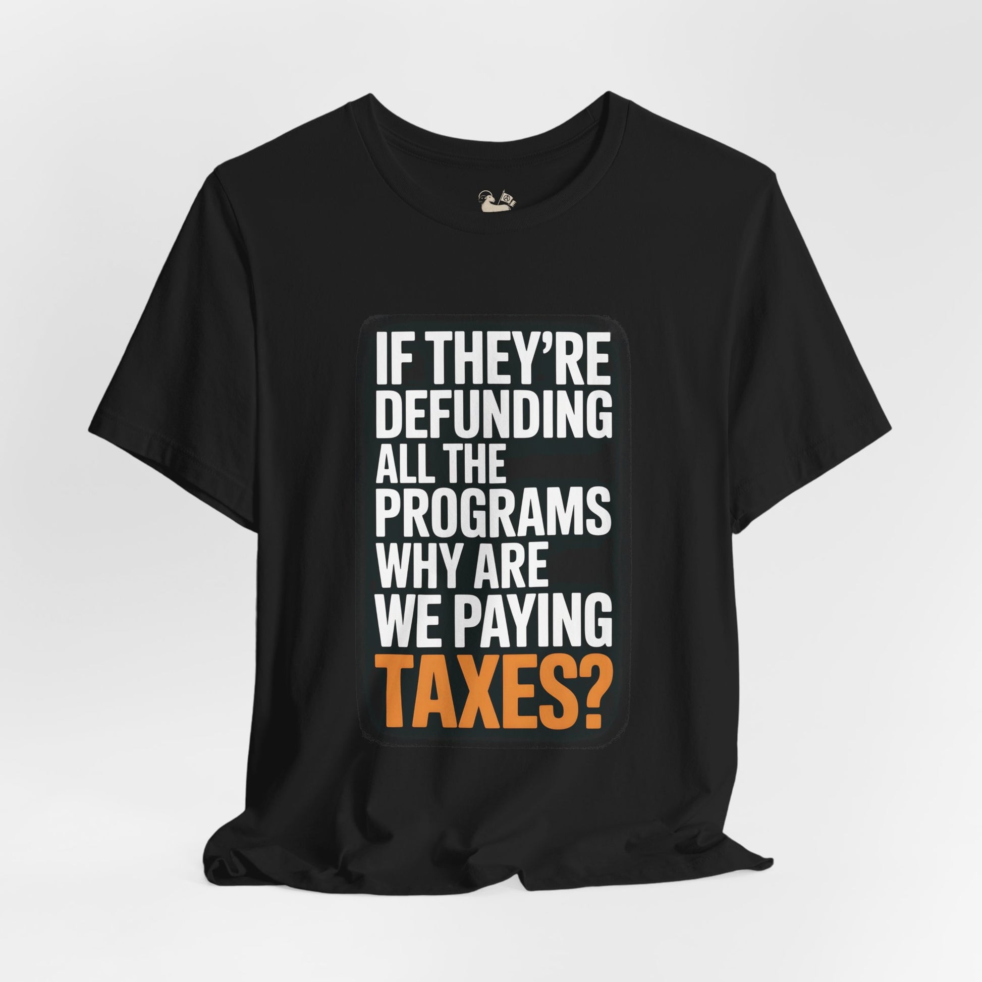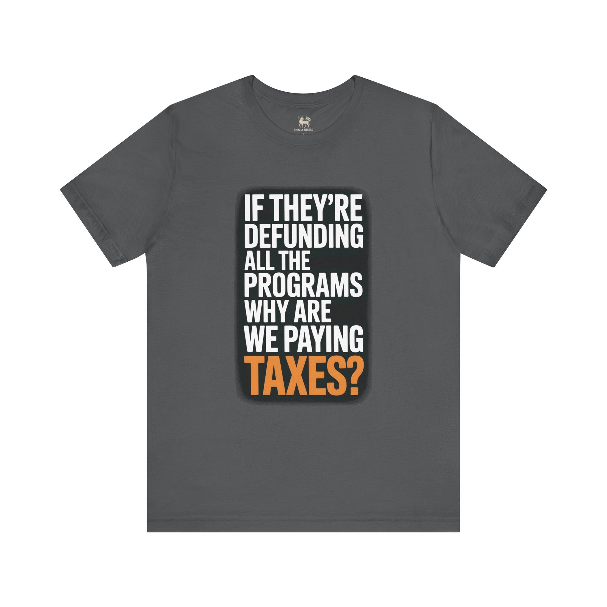 “If They’re Defunding All the Programs Why Are We Paying Taxes?” Unisex Protest Tee – Bella + Canvas 3001 | Made in USA | Unruly Thread Activist Shirt