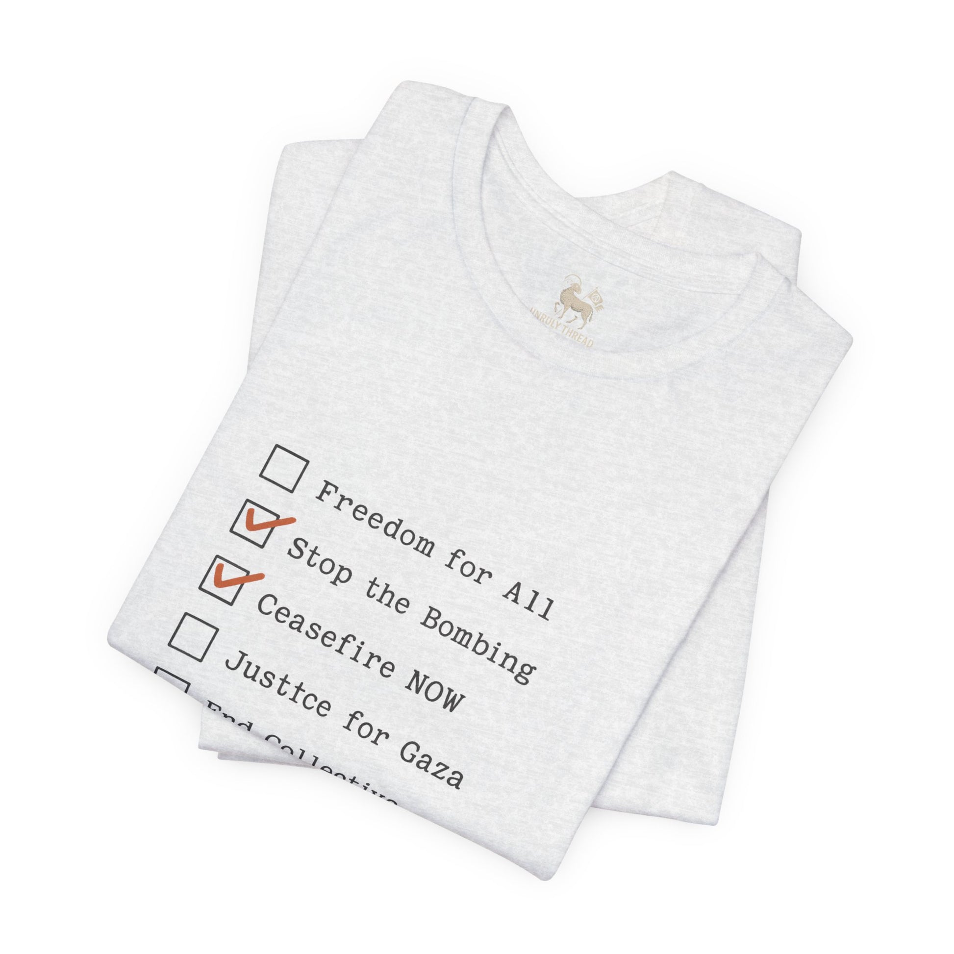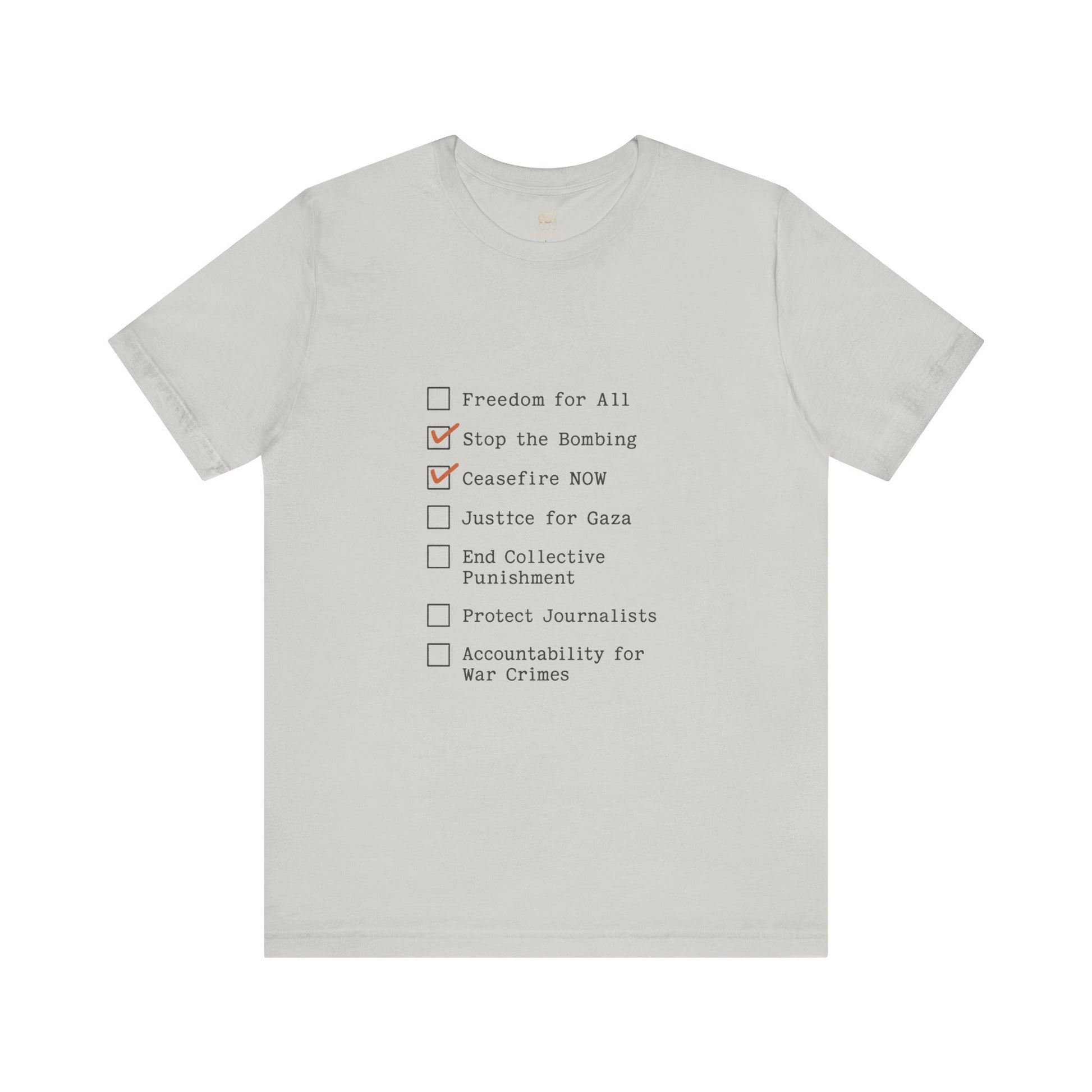 The Checklist – Ceasefire Active Edition Protest T-Shirt | Bella + Canvas 3001 Unisex Tee